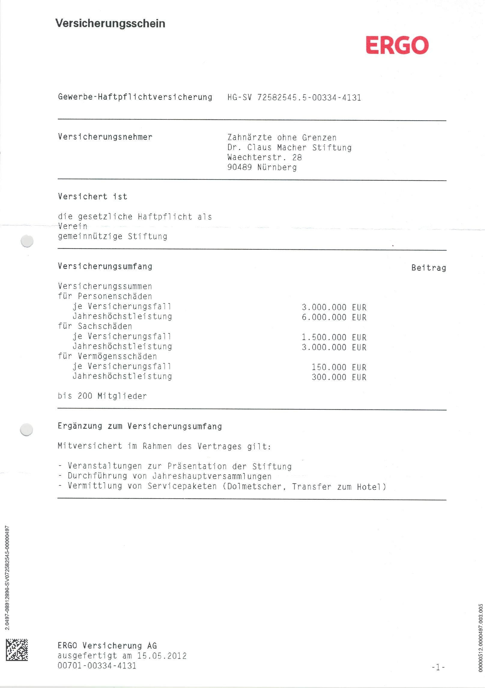 - Berufshaftpflichtversicherung